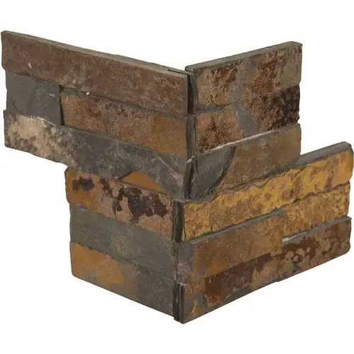 MSI's Natural Earth Ledger Corners feature a striking blend of rich rusts, browns and charcoal grays in a gauged finish. Highly prized for its rustic, warm appearance, the ledger corners complement MSI's Natural Earth Ledger Panels. They come in 2 separate pieces, each with stepped cut ends - which allows them to be used as traditional corners or inverse corners - depending on your installation needs. Natural Earth Ledger Corners are suitable for residential and light-commercial settings, where they put the finishing touch on feature walls, fireplace surrounds, planter walls and other projects. Note: Please inspect all tiles before installation. Natural stone products inherently lack uniformity and are subject to variation in color, shade, finish, etc. It is recommended to blend tiles from different boxes when installing. Natural stones may be characterized by dry seams and pits that are often filled. The filling can work its way out and it may be necessary to refill these voids as part of a normal maintenance procedure. All natural stone products should be sealed with a penetrating sealer. After installation, vendor disclaims any liabilities.