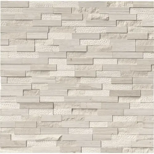 Bring a contemporary style to your space with this White Oak Split Face Ledger Panel Multi-Finish Marble Wall Tile (10 cases / 60 sq. ft. / pallet). Easily add this tile to your kitchen or bathroom. The tile comes with an interlocking Z feature, which makes the installation process easier. Use this tile in outdoor residential or for commercial use.