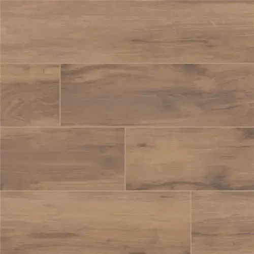 Enhance your interior design with the charming warmth of this MSI Botanica Cashew porcelain floor and wall tile. Crafted with cozy, rich browns and beiges, this glazed tile recreates the knots, grains and character of natural hardwood. Its matte finish is perfect for a variety of residential and commercial projects. Durable and low maintenance, this beautiful flooring option makes a striking statement when couples with a complementary tile or when placed in a creative pattern, such as a herringbone design. It is also suitable for commercial applications. This rectified tile is mechanically finished on all sides for uniformity. Its precise sizing allows for a thinner grout joint, which results in a clean, professional install and reduces staining issues. This tile is available in multiple sizes, offering flexibility in design and installation.