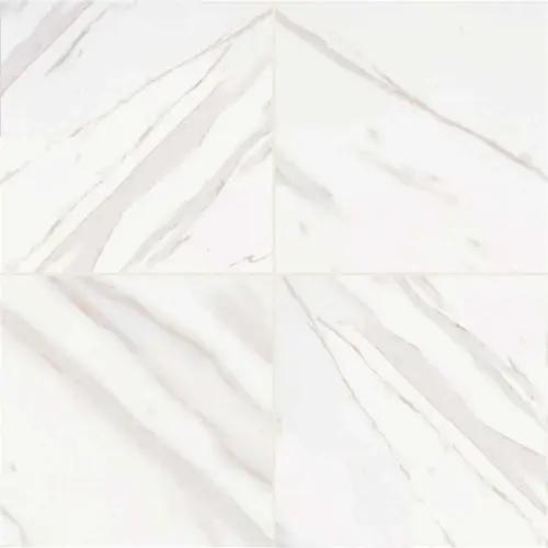 Incorporate a touch of style into your space with the MSI Calacatta Porcelain Floor and Wall Tile. A perfect complement to any contemporary aesthetic, this elegant, white larger tile with veins of gray and browns blends the look of natural marble stone with porcelain durability and a low sheen surface to help brighten your decor. Suitable for medium-duty commercial or residential floors and walls with minimum maintenance, the tile incorporates a distinctive personal signature in a wide variety of designs. Use matching trim tile or a combination of field tile to achieve the design that best suit's your space and preferences.