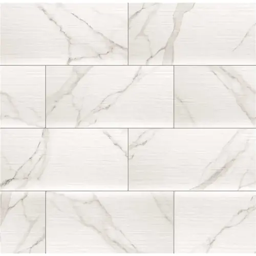 Stylize your space with this Dymo Statuary Stripe White 12 in. x 24 in. Glossy Ceramic Patterned Look Wall Tile (16 sq. ft./Case). Use this in an indoor or outdoor space. It works well in kitchens, bathrooms and other spaces around your home.