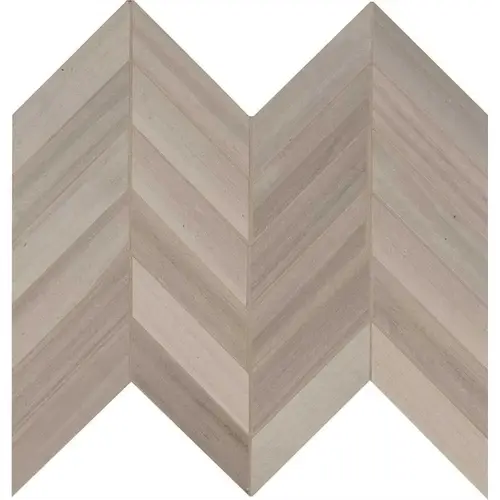 MSI's Havenwood Platinum Chevron Mosaic Porcelain Floor and Wall Tile features cool steely gray tones complemented by darker knots, lending a realistic air to this wood-look tile. Its contemporary chevron pattern adds interest and detail to floors and walls in kitchens, bathrooms, bedrooms or anywhere you want to add a touch of trend. This matte-finish chevon mosaic is especially stunning as backsplash tile and shower tile. Use this non-rectified porcelain alone or pair it with Havenwood Platinum planks for added detail and sophistication either way, its large format helps reduce installation time while allowing for a more professional finish.