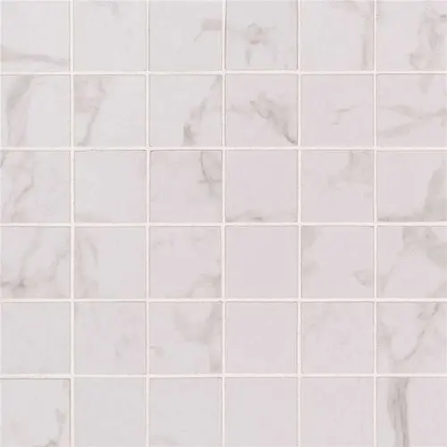 MSI's Praia Carrara 12 in. x 12 in. Matte Finish mesh mounted mosaic Floor and Wall Tile is an exquisite porcelain tile that echoes the look of fine white marble, complete with soft gray veins. In luxury style and convenient 2 in. x 2 in. bricks on 12 in. x 12 in. mesh backed format, this tile is impressively versatile. Use it in residential or commercial settings, on floors, walls, or countertops in the kitchen, bath, living room or other space where easy-care elegance is welcomed. A modern take on a classic marble, this tile works with nearly any design scheme and color palette.
