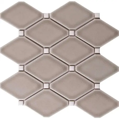 Enhance your home's walls or countertops with this Dove Gray ceramic mosaic wall tile. Crafted with a trendy glossy gray sheen and flat edge, these wall tiles feature diamond patterned pieces. They are perfect choice for a kitchen backsplash, bathroom shower or accent wall. The tiles are arranged on a mesh sheet for worry-free installation. These durable, distinct wall tiles instantly upgrade the look of your residential space.
