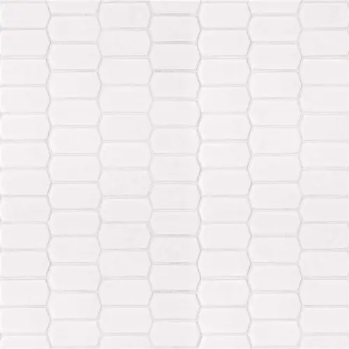 Retro Picket Bianco Pattern Porcelain Mosaic Tiles feature a soft white background with tonal inflections from the porcelain. Homeowners choose this tile for its pretty pattern and cool color, which make it an ideal backdrop for any design. Use this versatile product as porcelain mosaic backsplash tile or to create a stunning accent wall or countertop. Its also suitable for light commercial settings, where it is often used as porcelain backsplash tile. Wherever its used, this modern white tile makes a style statement that turns heads.