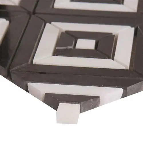 Refresh the look of your home with this MSI Rhombix Nero Mosaic Tile. It features white and black marble in a diamond pattern, perfect for showers, accent walls or kitchen backsplashes. This natural stone tile is Greenguard Indoor Air Quality Certified and it's mounted on mesh-backed sheets for an easy, professional-looking installation. Note: Inspect all tiles before installation. Natural stone products inherently lack uniformity and are subject to variation in color, shade, finish etc. It is recommended to blend tiles from different boxes when installing. Natural stones may be characterized by dry seams and pits that are often filled. The filling can work its way out and it may be necessary to refill these voids as part of a normal maintenance procedure. All natural stone products should be sealed with a penetrating sealer.