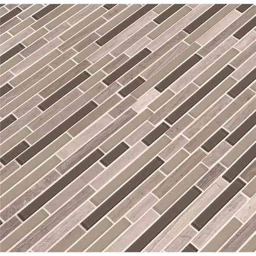 Add a splash of modern styling to your decor with Modello Grigio Interlocking Mosaic Tile. A seemingly random blend of gray stone and variably finished glass forms this mesh-mounted tile, infusing your space with a chic look and a contemporary ambience. The mixed-sheen, mixed-finished tiles will invigorate any residential or commercial setting and are versatile enough to be used outside or on a fireplace surround. They look particularly ravishing as kitchen backsplash or bath wall and also work stunningly as a countertop surface or feature wall.