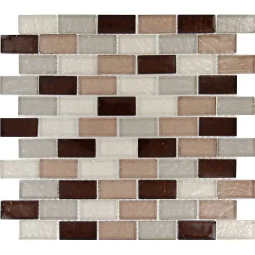 Add a splash of sophistication to your decor with Ayres Blend Mosaic Tile. A seemingly random array of 1 in. x 2 in. crystallized glass bricks forms this mesh-mounted tile, infusing your space with a sharp look and contemporary flair. The high-sheen, smooth-finished 12 in. x 12 in. tiles from MSI add definition to any residential or commercial expanse and are versatile enough to be used outside or on a fireplace surround. They look particularly striking as kitchen backsplash or shower wall and also work splendidly as a countertop surface or accent panel.