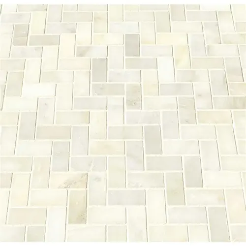 Enhance your interior space with this MSI Greecian White mosaic tile. Ideal for a kitchen backsplash, shower or fireplace, the mesh backing makes this tile easy to install. Frost resistance allows indoor or outdoor application. For a charming look, it offers a herringbone pattern and a polished finish.