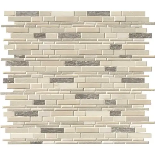 Add a splash of chic styling to your decor with Everest Interlocking Porcelain Stone Blend Mosaic Wall Tile. A seemingly random blend of stone and tile strips forms this 12 in. x 12 in. mesh-mounted mosaic, infusing your space with a sharp look and contemporary flair. The mixed-sheen, mixed-finished tiles from MSI add definition to any residential or commercial expanse and are versatile enough to be used outside or on a fireplace surround. Boasting natural white marble interspersed with crackly porcelain chips, they look particularly stunning as kitchen backsplash or bath wall, and also work splendidly as a countertop surface or accent band.