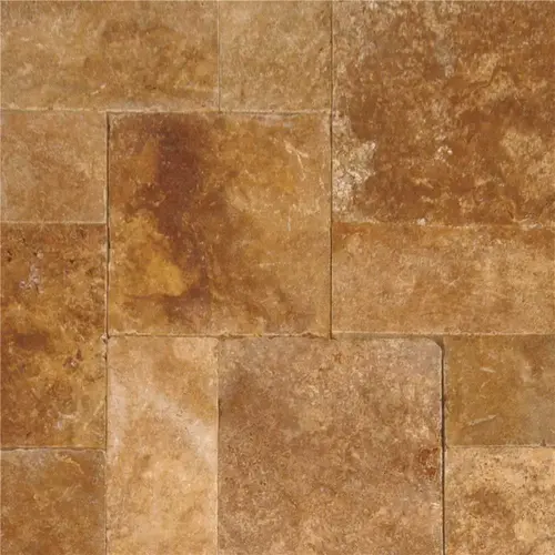 Each individual paving piece in the MS International Riviera Travertine Tumbled Paver Kits (10-Pack) shows the variation in color unique to natural stone, helping you create a lovely paver pattern. Pre-fitted for easy installation, the pavers in this kit are tumbled, honed and unfilled. Inspect all tiles before installation. Natural stone products inherently lack uniformity and are subject to variation in color, shade, finish, etc. It is recommended to blend tiles from different boxes when installing. Natural stones may be characterized by dry seams and pits that are often filled. The filling can work its way out and it may be necessary to refill these voids as part of a normal maintenance procedure. All natural stone products should be sealed with a penetrating sealer. After installation, vendor disclaims any liabilities.