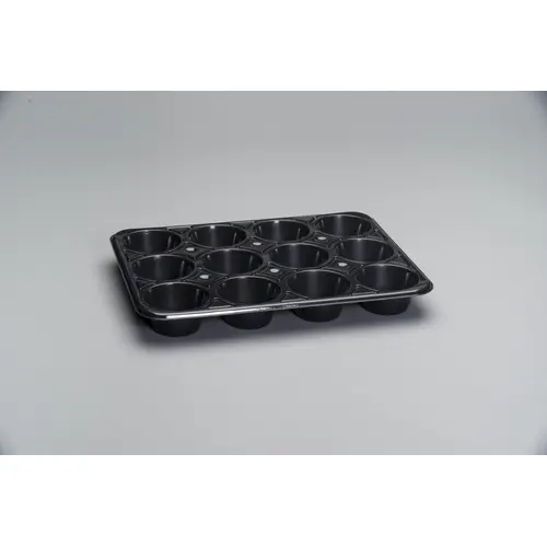 55512--8B JUMBO 12 CT CPET MUFFIN TRAY/ 100 PCS BLACK