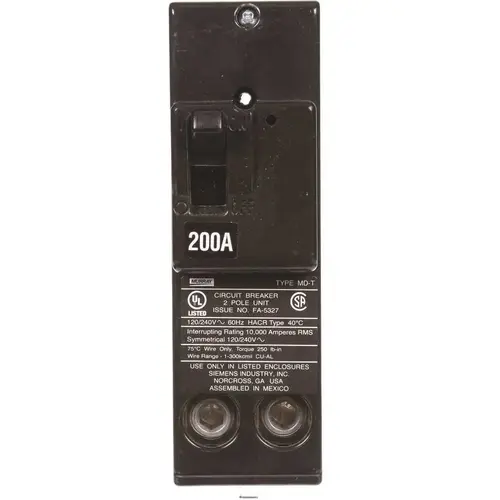 Siemens MPD2200 200 Amp Double-Pole 10 kA Type MD-T Circuit Breaker Black