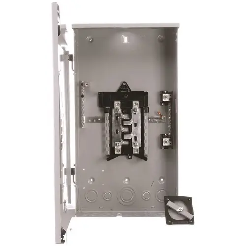 Murray 200 Amp, 8 space, 16 circuit outdoor rated main lug load center. Load center is single phase, 120/240 Volt. Main lug load center can be converted to main breaker by installing an MBK200M main breaker kit.
