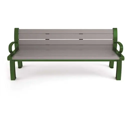 The Heritage Recycled Plastic Bench is made with nine 2 in. x 4 in. tri-blend recycled HDPE Resin wood slats and a powder-coated, heavy-duty cast aluminum frame. Recycled plastic material is virtually maintenance-free. It does not need to be sealed, painted or stained and it cannot rot. The under structure is heavily braced with length and width supports. Bench frame includes hole for surface mount. Surface wedge anchor included for surface mounting. Stainless steel hardware comes standard with this product. Additional colors available upon request.