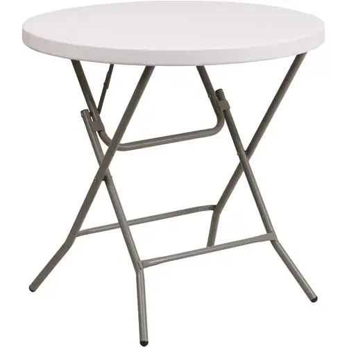 This petite sized folding table can be used in banquet halls, cafeterias, or in the home. This table is a great solution for temporary setups for displaying food or other small items. The durable blow molded top is low maintenance and cleans easily. Easy to fold legs fold flat under table top to make storage more convenient and for better portability. This table is commercial grade to withstand everyday use in the hospitality industry.