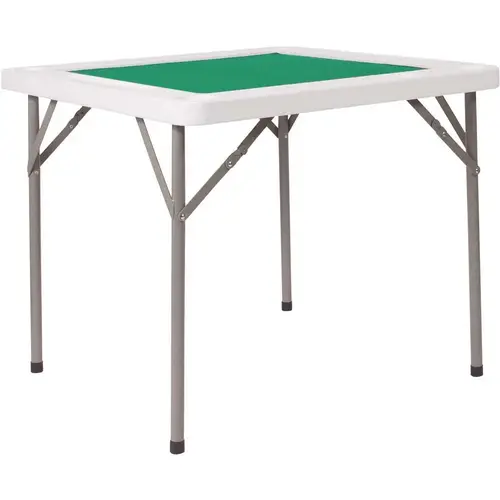 Up the ante with this folding card table that easily seats 4 people! When you pull this table out your friends will know that it is time to play for real. This table is highlighted with a felt green surface, cup holders and a placeholder for your cards with a lip. The durable plastic border will withstand years of use and clean easily. The table legs fold under the table to make storage more convenient and for better portability.