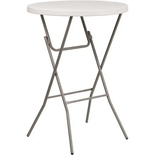 This plastic folding table is a convenient option when you need to set up tables for special events, cook-outs on your patio at home or when you're serving snacks around the pool. The thick tabletop is 1.75 in. thick, and will seat up to 3 adults. It's waterproof, impact and stain resistant and has a 165 lbs. static load capacity. It features powder coated cross legs and Floor caps to protect your floor by sliding smoothly when you need to move it. The durable, easy-to-clean table folds compactly to transport and store. Designed for both indoor and outdoor use, the bar height folding table is commercial rated for use in banquet halls, hotels and outdoor events and an excellent choice for your next home, school or business event.