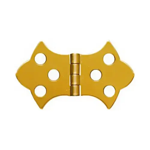 National Hardware Decorative Hinge, 2 lb Weight, Door Leaf Height: 1.36 in, Door Leaf Thickness: 0.04 in, Frame Leaf Height: 1.36 in, Frame Leaf Thickness: 0.04 in, Pin Diameter: 0.1 in, Through Hole Mounting, Number of Mounting Holes: 6, Mounting Hole Diameter: 0.21 in, Brass, Solid Brass, Dimensions: 1.36 in L x 2-1/4 in W, Includes: Fasteners