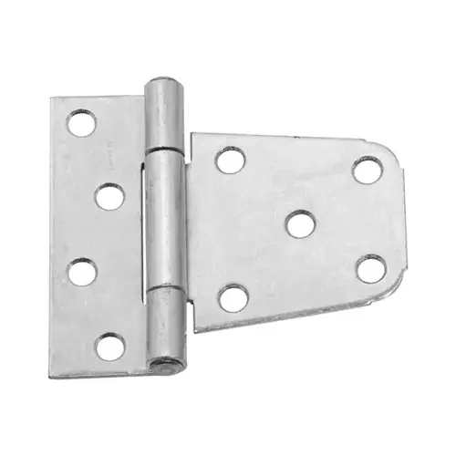 National Hardware Gate Hinge, 48 lb Weight, Door Leaf Height: 3-1/2 in, Door Leaf Width: 3.05 in, Door Leaf Thickness: 0.1 in, Frame Leaf Height: 1.56 in, Frame Leaf Width: 4-1/4 in, Pin Type: Tight, Pin Diameter: 0.326 in, Screw Mounting, Number of Mounting Holes: 9, Steel, Zinc, Dimensions: 4.8 in L x 4-1/4in