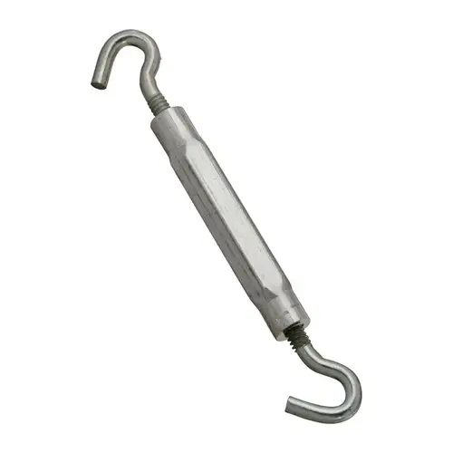 National Hardware 2174BC Turnbuckle, Working Load Limit: 45 lb, Thread Size: #10-24, Take-Up Size: 5-1/2 in L, Closed Length: 4.12 in, End Fitting A: Hook, End Fitting B: Hook, Eye Length: 2 in, Aluminum, Zinc