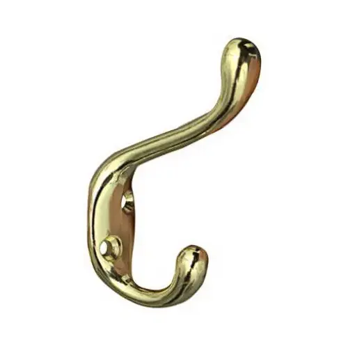 National Hardware V166 Coat and Hat Hook, 75 lb Weight, Zinc, Brass, Wall Mounting, Projection: 2-1/2 in, Includes: (2) #8 x 1 in Screw Fasteners