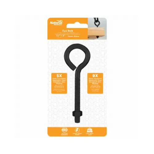 -National Hardware's 3/8" x 5" Eye Bolt (with nut) is designed to firmly attach a securing eye to a structure for rope or cable ties
