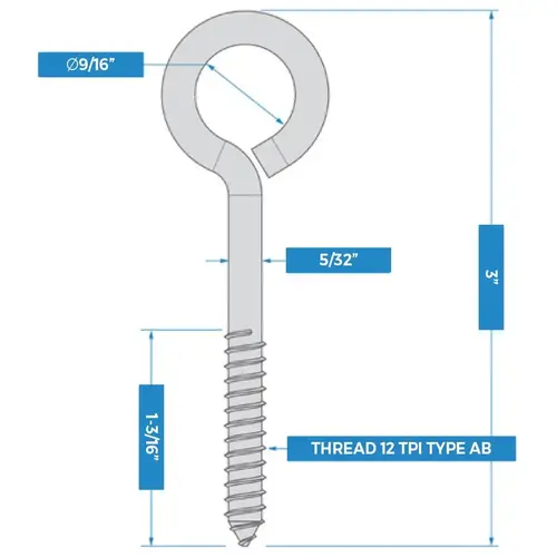 -National Hardware's 3/16" x 3" Lag Screw Eyes are designed for home and industrial use
