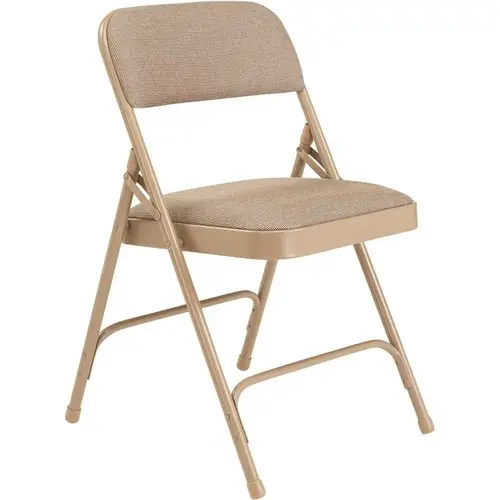 National Public Seating 2200 series fabric padded folding chair is durable and stable made with a heavy duty intuitional grade steel frame. The seat is made with stain-resistant scotch guarded fabric, covering a 1 1/4 in. thick foam. As a part of the body builder line, these chairs are strong, durable and stable with a weight capacity of 480 lbs.