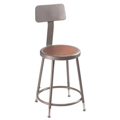 The durable construction and classic design of the 6200 Series heavy-duty stools are ideal for hands-on educational settings like art rooms, science labs, home economics or shop classrooms. These reliable stools feature a sturdy frame of 18-gauge steel tubing and securely welded to a 14" diameter seat pan. Riveted to the pan are firm, round Masonite seats that will not warp, chip or crack as they provide years of dependable use. Footrest rings are securely bonded to each leg with four spot welded contact points. This model features height-adjustable legs extending from 19" to 27" in 1-inch increments and adjustable backrests that can be moved 2" up and down or forward and back.