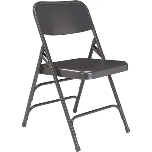 National Public Seating 300 series steel folding chairs are institutional grade folding chairs, designed with a waterfall-style front for added comfort. This chair features matching replaceable glides to protect your floors from damage. As a part of the body builder line, these chairs are strong, durable and stable with a weight capacity of 480 lbs.