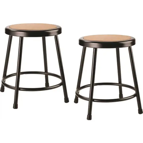 The durable construction and classic design of the black 6200 Series heavy-duty stools are ideal for hands-on educational settings like art rooms, science labs, home economics or shop classrooms. These reliable black-colored stools feature a sturdy frame of 18-Gauge steel tubing securely welded to a 14 in. Dia seat pan. Riveted to the pan are firm, round Masonite seats that will not warp, chip or crack as they provide years of dependable use. Footrest rings are securely bonded to each leg with 4-spotwell contact points.