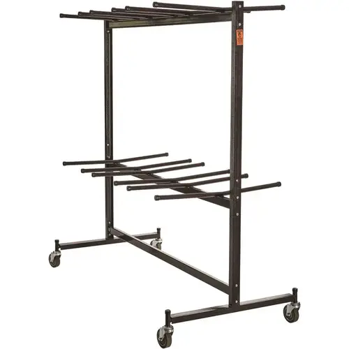 The 84 Series Double-Tiered Hanging Chair Dolly is a wise choice for saving time and space in busy multi-purpose environments. Quickly set up, take down and store as many as 84 steel or plastic folding chairs with this durable, tubular steel, easy-to-assemble unit that comes with a brown powder-coated paint finish. Upward angled rods secure chairs with gravity in addition to end-caps. 4 heavy-duty thermoplastic rubber 4 in. swivel casters allow you to move the dolly with ease, even through doorways. Each caster boasts a 330 lbs. weight capacity for a total of 1320 lbs.