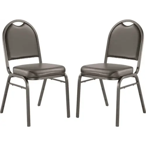 The 9200 Dome-Back stack chair is durable and classy enough to use in your busiest social setting, be it a dining room or corporate banquet hall. It features a strong square 18-Gauge steel frame plus an under-seat H-shaped brace for extra support. The seat features supremely comfortable and spacious 2 in. thick high-density foam padding with easy-to-clean vinyl upholstery or institutional grade fabric, and a waterfall-style edge. MDF core within both the seat and rounded backrest which has a built-in handle for easy moving and stacking. Fortifying stacking bars and 12 plastic bumpers protect the powder-coated paint finish from scratches when the chair is stacked (up to ten units high).