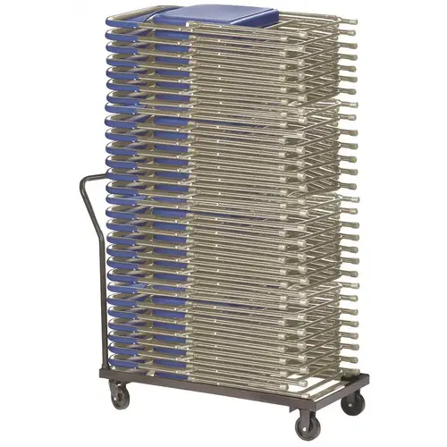 The DY-700/800 Dolly can stack and transport up to 36 folding chairs (NPS 800 Series). This durable 11-Gauge black powder-coated steel unit features four 4 in. nylon casters (2 that swivel) for easy mobility over nearly any surface. Each caster boasts a 275 lbs. weight capacity for a total of 1100 lbs.