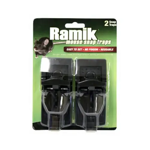 Durable plastic trap with high tension spring and bait reservoir. Easy to set. No poison. Reusable.