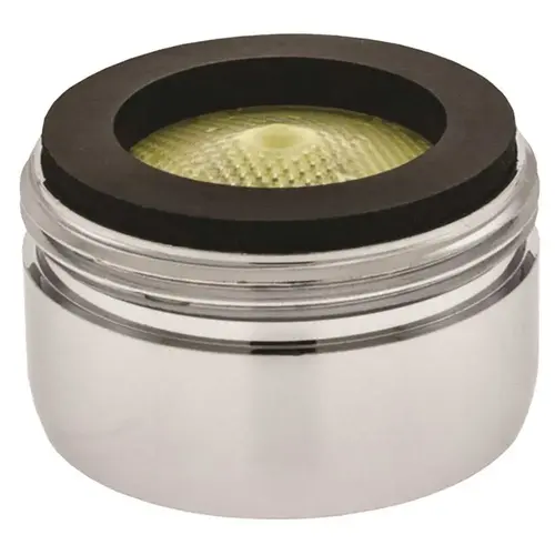 The NEOPERL PCA Perlator 2.2 GPM Regular male 15/16 in. 27 is pressure compensating. The pressure compensating design helps to maintain a constant and comfortable water flow regardless of pressure fluctuations. This aerator also features an anti-clogging yellow dome screen that filters sediment. The Patented single piece construction is virtually unbreakable and lime resistant. The laminar feature provides a constant crystal-clear stream (non-aerated), which prevents airborne bacteria from entering the water through air contamination. Solid brass housing with a chrome finish. Due to state regulations this item is not available in California.