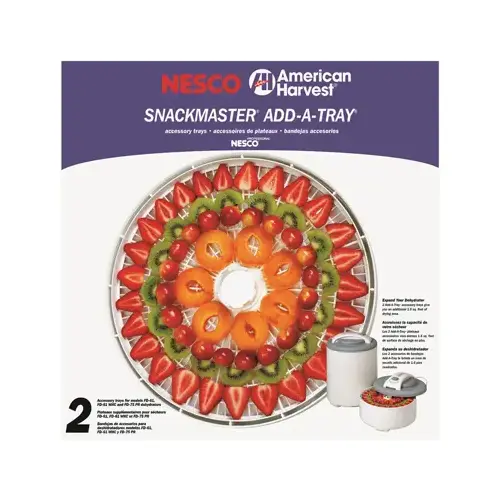 Nesco Snackmaster Add-A-Tray expands the capacity of your favorite Nesco dehydrator. These trays work specifically with Nesco 60 and 70 Series Dehydrators that expand up to a maximum of 12 trays. Each tray is made of high-quality, BPA-free, food grade plastic and is designed to increase the drying ability of the dehydrator. Our patented Converga-Flow drying system provides proper heat distribution that dehydrates foods faster and more evenly from top to bottom, with no tray rotation necessary. Nesco Snackmaster Add-A-Trays enable you to take advantage of your dehydrator by increasing the overall drying area. Expand your dehydrator with additional trays as your needs grow, perfect for drying more of your favorite meats with our famous jerky seasonings. With additional trays, you can save time by drying larger batches. Drying efficiency is not altered by the addition of extra trays. Compatible with 13 diameter trays. Hand wash only.