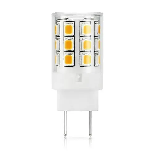 Newhouse Lighting 2.5W LED T4 Bulb GY8.6 Base 3000K. Specialty Application Led Bulb. Package Of 4. 2.5 Watt. 120 Volt. 250 Lumens. 3000K CCT. 90 CRI. Dimmable. Replaces 25W Halogen. GY8.6 Base. 1.54L x 0.63" Dia. Mfg #GY8-2525D-4PK