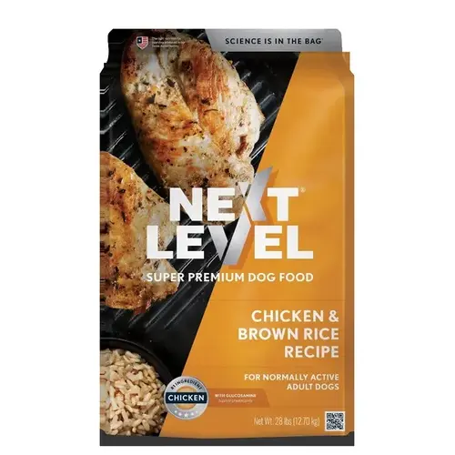 Scientifically formulated with deboned chicken as the #1 ingredient, Chicken & Brown Rice provides optimal nutrition and energy to power your adult dog's everyday activity level- while supporting a healthy digestive system, immune response, and overall wellness. Next Level Chicken & Brown Rice Recipe is formulated to meet the nutritional levels established by the AAFCO Dog Food Nutrient Profiles for maintenance. Ingredients: Deboned Chicken, Chicken Meal, Brown Rice, Grain Sorghum, Peas, Millet, Chicken Fat (Preserved with Mixed Tocopherols), Dried Yeast, Dried Beet Pulp, Flaxseed, Hydrolyzed Whole Chicken, Natural Flavors, Yeast Culture, Dehydrated Alfalfa Meal, Potassium Chloride, Dried Kelp, Salt, Choline Chloride, Dried Chicory Root, Taurine, DL-Methionine, L-Carnitine, Tomato Pomace, Carrots, Blueberries, Cranberries, Minerals (Zinc Sulfate, Ferrous Sulfate, Manganese Sulfate, Copper Sulfate, Zinc Proteinate, Manganese Proteinate, Copper Proteinate, Calcium Iodate, Selenium Yeast), Vitamins ( L-Ascorbyl-2-Polyphosphate (Source of Vitamin C), Vitamin B3 (Niacin), Vitamin E Supplement, Vitamin B5 (Calcium Pantothenate), Vitamin B (Thiamine Mononitrate), Vitamin B6 (Pyridoxine Hydrocholoride), Vitamin B2 (Riboflavin), Vitamin A Supplement, Vitamin B9 (Folic Acid), Vitamin B7 (Biotin), Vitamin B12 Supplement, Vitamin D3 Supplement), Dried Enterococcus Faecium Fermentation Product, Dried Lactobacillus Acidophilus Fermentation Product, Dried Aspergillus Niger Fermentation Extract, Dried Trichoderma Longibrachiatum Fermentation Extract, Dried Bacillus Subtilis Fermentation Extract, Yucca Schidgera Extract, Glucosamine Hydrochloride, Mixed Tocopherols (Preservative), Rosemary Extract