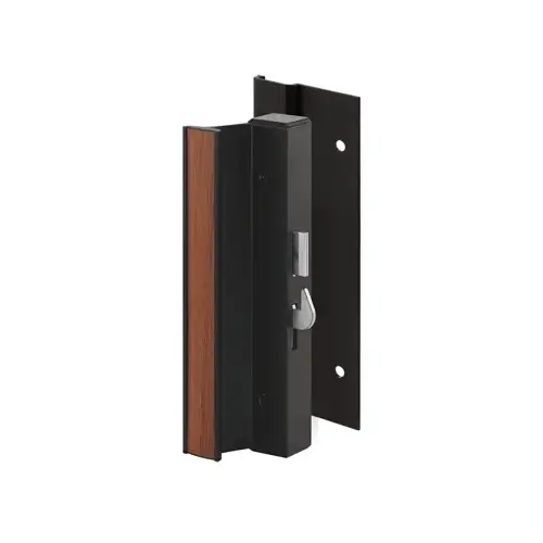 This CRL Handle Set has a black extruded aluminum handle with a steel hook. It has a reversible anti-lift pin for left or right hand installations. This handle set fits on Arcadia doors. One inside latch and pull, outside pull, face mounting keeper and installation fasteners per package.