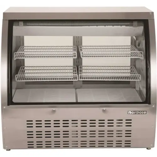 The Norpole 18 cu. ft. commercial refrigerated deli case allows you to display all your deli products with ease. The case is curved glass with attractive sliding glass doors. Digital temperature controller provides easy and worry free operation, keeping your products between 32 degree F and 43 degree F. 4-Adjustable shelves provide excellent organization. Easy to access condenser coil for cleaning and service.