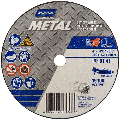 Norton 7660789453-XCP25 Cutoff Wheel: Type 01/41, 4" Dia, 0.035" Thick, 3/8" Hole, Aluminum Oxide - pack of 25