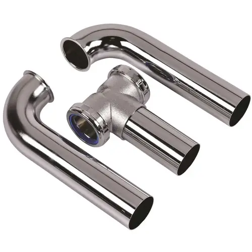 Dearborn Brass 1-1/2 in. Brass Tubular Center Outlet Waste with Hi-Line Connection is designed for use in tubular drain applications. Chrome finish. Includes 2 waste arms, a tailpiece, twin tee, 2 zinc nuts and 2 rubber washers.