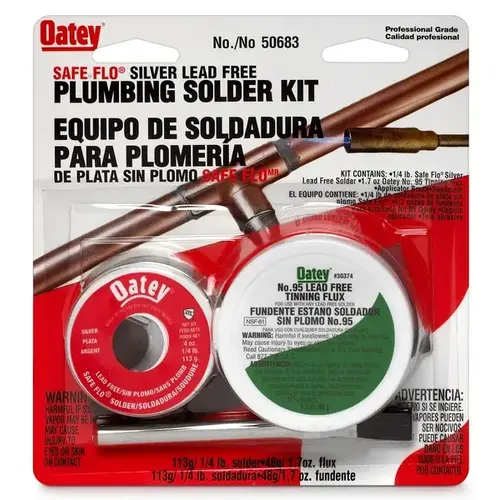 Oatey Wire Solder Kit, Net Content: 0.25 lb, Solid, Compositions: 60 - 100% Tin, 1 - 5% Copper, 1 - 5% Bismuth, 1 - 5% Silver, Specific Gravity: 9 - 11, Applicable Materials: Bismuth, Copper, Tin