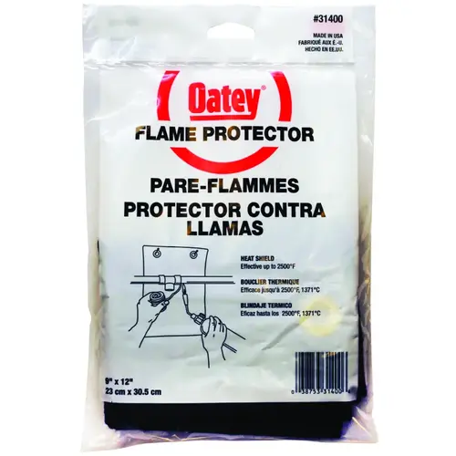 Oatey Flame Protector is a Zoltek Pyron based heat shield designed to protect studs, walls, floors and other surfaces from sparks or flames. It can be used on lines carrying water, steam, caustics and dilute acids. Made with flame-retardant Zoltek Pyron fibers and ideal for use while soldering near studs, joists or walls.