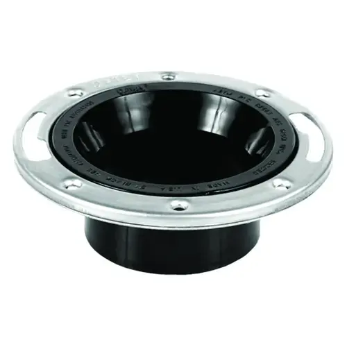 Designed to connect a water closet outlet to a plumbing system and sit flush with the floor. Over 4"" Level-fit closet flange solvent welds over 4"" Sch. 40 DWV pipe. Corrosion-resistant stainless steel ring. Meets ASTM D2661 (ABS) & D2665 (PVC). Adjustable ring for alignment of bolts and screws. Sits flush on the floor.