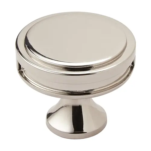 The Amerock BP36603PN Oberon 1-3/8 in (35 mm) Diameter Knob is finished in Polished Nickel.