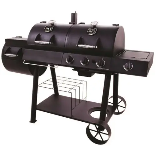 Smoke or grill how you like with the Oklahoma Joe's Longhorn Combo Charcoal/Gas Smoker and Grill. Equipped with both a charcoal and gas grill chamber and an attached offset firebox, this multi-purpose combo smoker and grill allows you to barbecue your way. Oklahoma Joe's Longhorn Combo Smoker is built with heavy-gauge steel construction and includes porcelain-coated cast-iron grates to ensure easy cooks and delicious food so your time is "Worth the While".