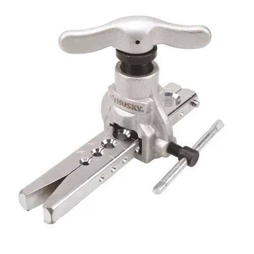 The Husky Heavy Duty Pro Flaring Tool provides smooth, uniform, 45 flares with minimal effort. It is designed with a hardened steel flaring cone and creates uniform flare walls without galling. It also features a handle clutch that releases when the flare is complete. Compatible with 3/16 in., 1/4 in., 5/16 in., 3/8 in., 7/16 in., 1/2 in., 5/8 in., and 3/4 in. pipe sizes. Built to last and backed by the Husky lifetime warranty.
